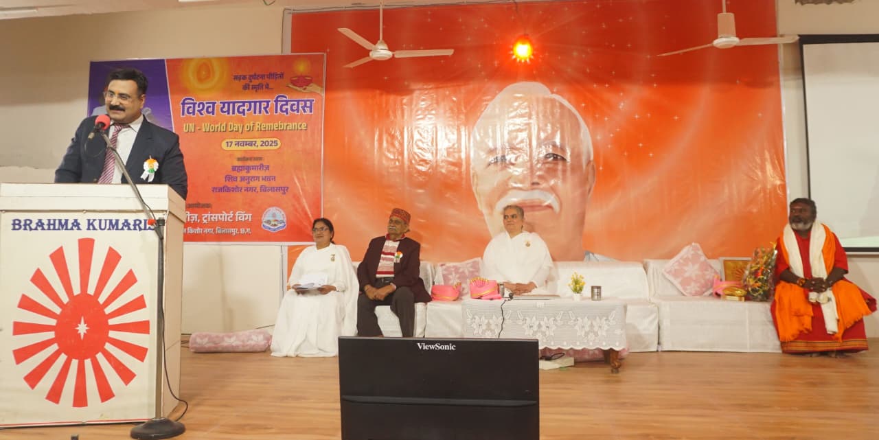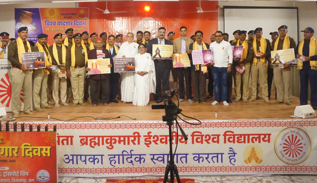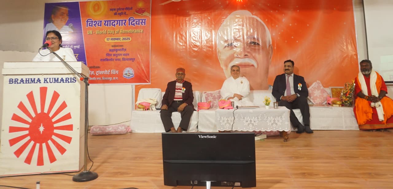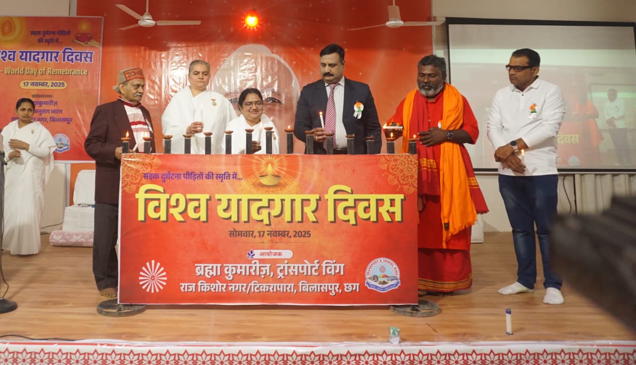 **बिलासपुर, 17 नवंबर, 2025:** प्रजापिता ब्रह्माकुमारी ईश्वरीय विश्वविद्यालय के ट्रांसपोर्ट विंग द्वारा बिलासपुर के शिव-अनुराग भवन में **सड़क दुर्घटना पीड़ितों की स्मृति में विश्व यादगार दिवस** के अवसर पर आयोजित **‘सुहाना सफर’** कार्यक्रम में, मुख्य वक्ता **बी.के. कविता दीदी** ने जीवन यात्रा को आध्यात्मिक दृष्टिकोण से देखने की प्रेरणा दी।