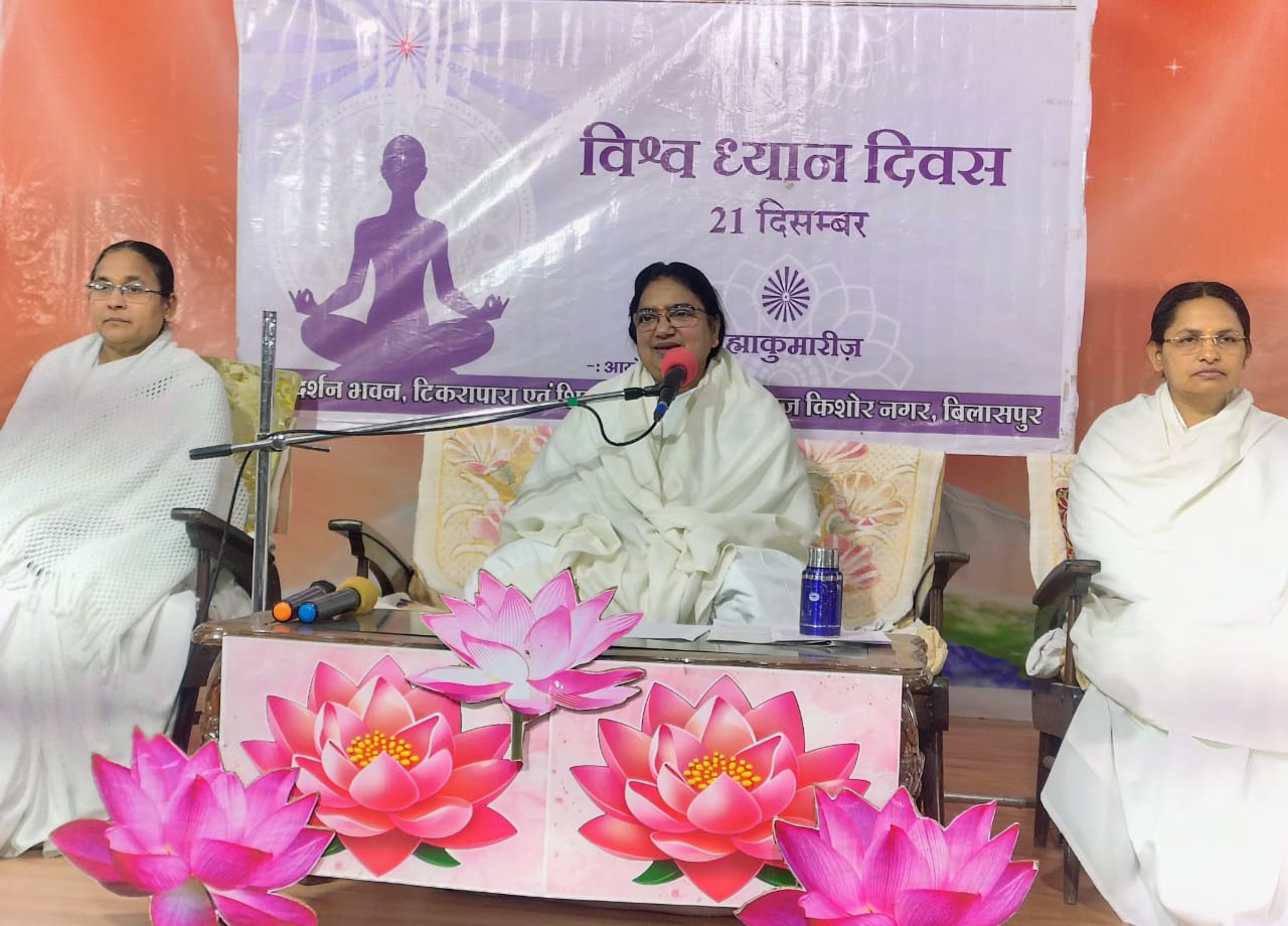 संयुक्त राष्ट्र द्वारा घोषित **21 दिसंबर ‘अंतरराष्ट्रीय ध्यान दिवस’** के अवसर पर ब्रह्माकुमारीज़ संस्थान द्वारा बिलासपुर सहित विभिन्न केन्द्रों पर विशेष ध्यान एवं जागरूकता कार्यक्रमों का आयोजन किया गया। विश्व ध्यान दिवस की मुख्य थीम *‘एकता और विश्वास’** रही, जिसके अंतर्गत विश्व स्तर पर शांति, सद्भाव और मानवीय मूल्यों की स्थापना का संदेश दिया गया।